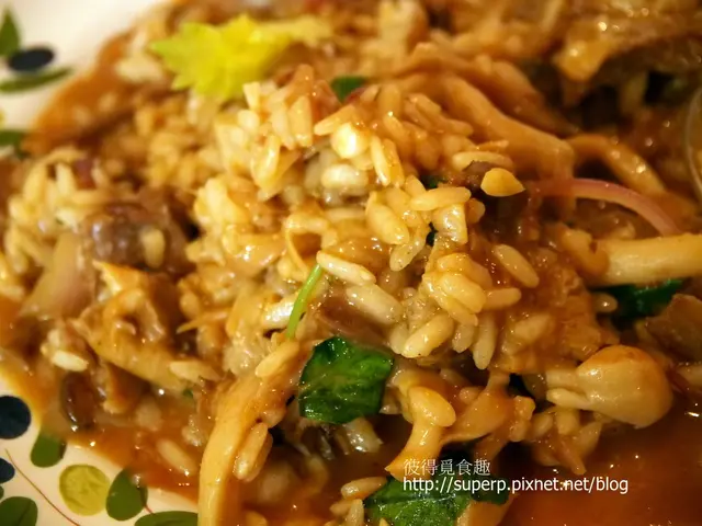 鄉村風豬舌燉飯$340(據說這道得過台北米食冠軍,所以點來吃看看。看起來有點湯湯水水,不過飯的口感其實硬中帶Q,用的是義大利米。醬汁鹹香可口,帶些菇覃的風味很棒。而且豬舌軟嫩,好吃,大推!)