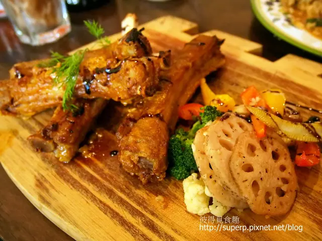 惡魔風烤肋排$490(肋排烤到微辣而且夠味,吃起來很過癮。搭配的烤蔬菜也很棒,淋上巴薩米克醋更爽口,好吃,大推!)
