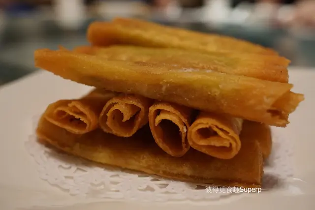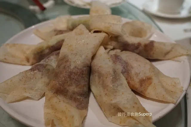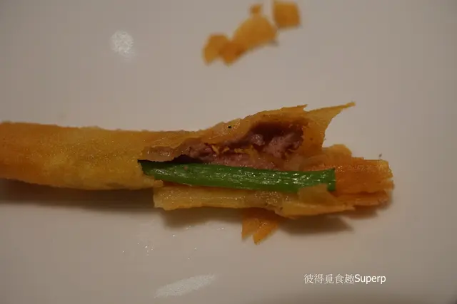 脆皮炸鵝肝$320(春捲皮包著鵝肝醬跟蔥一起炸。稍微油,但頗夠味。可以點來嚐鮮)