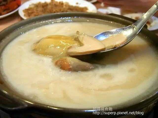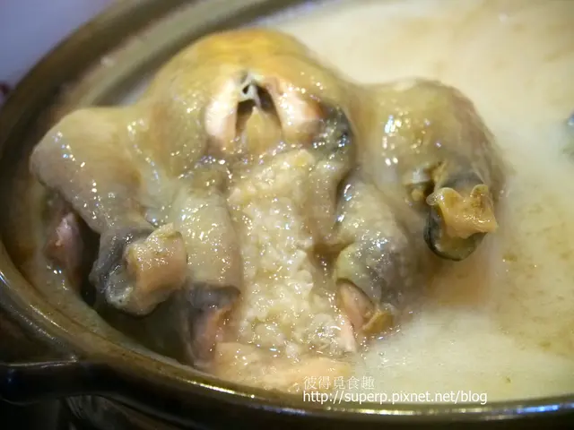 鮑魚糯米雞$4500(需預訂,非常大鍋。土雞內塞了糯米,跟鮑魚一起去燉。糯米已經被煮成米湯的程度,融合了雞湯跟鮑魚的鮮美。調味並不太重,喝起來淡雅而且會回甘。非常令人滿足的一品。大推!)