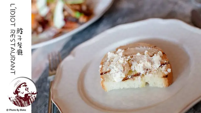 吃西餐當然一開頭就是先送上餐前麵包墊墊胃,很像是法國長棍吐司,外面烤的酥酥脆脆的,內裡卻是很柔軟的,有抹上一些奶油,讓整體的香氣更棒,抹醬是用Ricotta起司做底,然後加上了巴薩米克醋與碎核桃,吃起來軟綿綿的,但味道上卻很香,還有些核桃口感,整個很特別,麵包整大推,我們當下吃完後,服務生問我們要不要續,所有人的決定是一致通過。