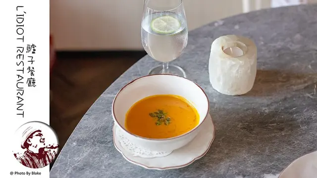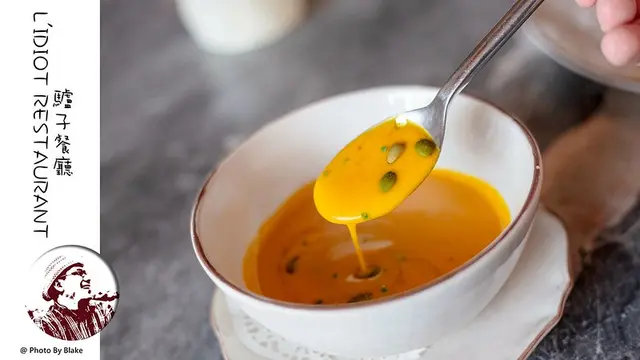 主廚例湯今天是推南瓜濃湯,當湯匙一下去就知道那個濃稠度不是蓋的,處理的很濃郁,喝起來卻不會太膩,有一點微微的甘甜感,然後上面還南瓜子,有一點畫龍點睛的效果在。