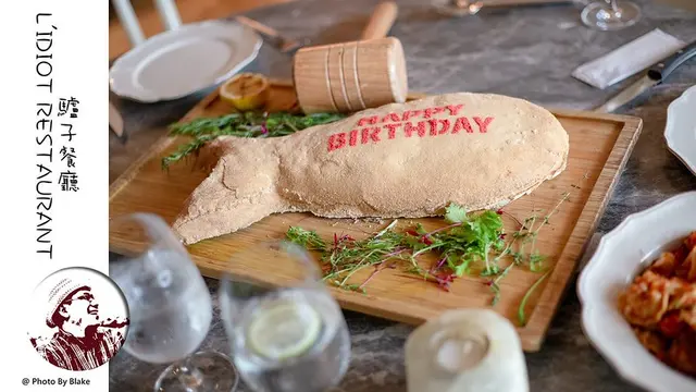 驢子餐廳近期還有推出節日慶生必點的慶祝魚,預訂價是NT$680元,當天現場點是NT$880元,很像是鹽焗雞的作法,是紅蘿蔔、洋蔥、黃檸檬片填入魚的內腹裡,然後再用厚鹽去包裹,最後送到烤箱去烤,一出來會聞到烤鹽的香氣,上面可以用上字樣,像是生日快樂、父親節快樂之類的,在吃之前可以用小槌子敲開,感覺好像是要敲開好運,所以才有慶祝魚這個名字。