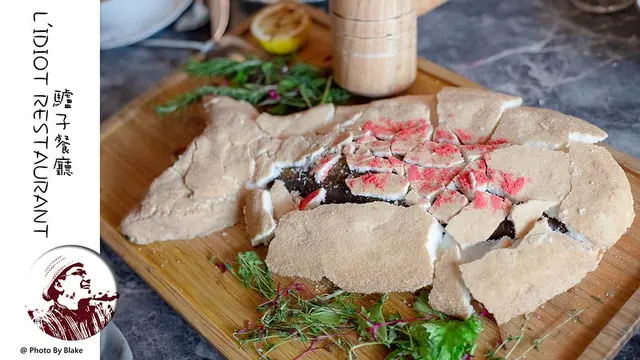 服務生會過來協助撥開鹽塊,並將魚肉切開,魚的部份就要看當天的魚獲狀況,今天我們來用餐是採用野生青衣魚,鹽焗做法將整個熱度悶烤,吃起來肉質還蠻鮮嫩的,吃這個慶祝魚還蠻有趣,是一個不錯的體驗。