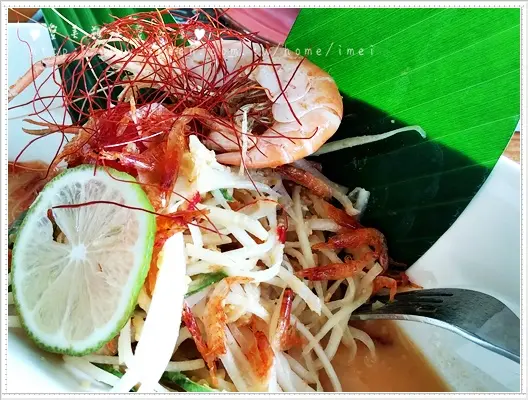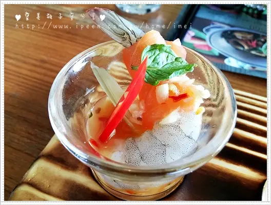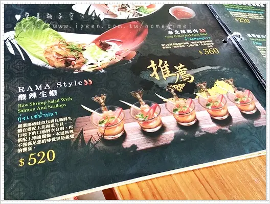 來看看第一道開胃菜,也是我倆都一致讚賞與店家推薦的"RAMA Style 酸辣生蝦"