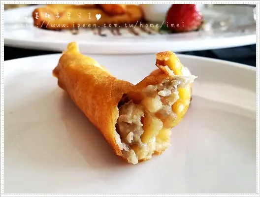 看看著酥炸成金黃色澤的捲餅再加上吸睛的擺盤