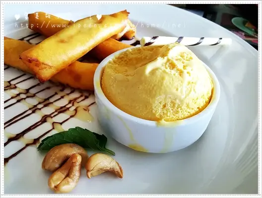 再來是我們倆都推薦的甜點 "香蕉捲餅佐芒果冰淇淋"