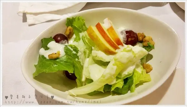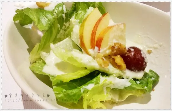 我則是偏愛他的優格醬料,而且沙拉很少看到有核桃耶! 讚!