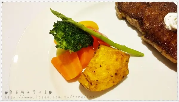 蘆筍貴三三,綠花椰不是使用冷凍蔬菜,不錯! 有在水準之上~