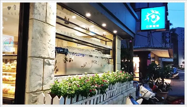 亮亮的招牌、可愛的花草、鵝黃燈光讓人更加注目日舞咖啡了