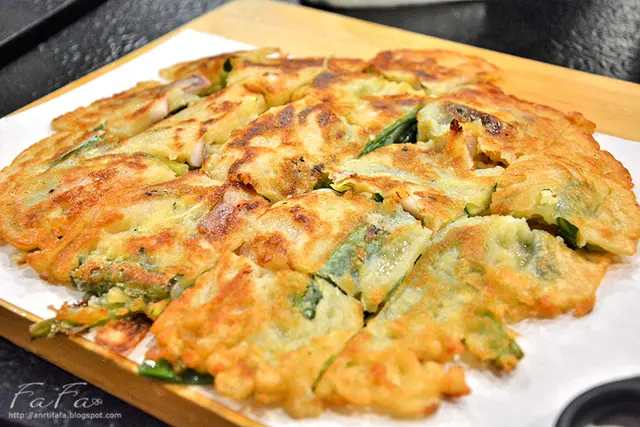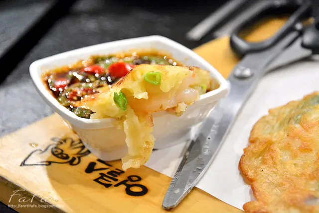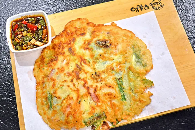 海鮮煎餅外層微酥,稍稍太軟糯了些,裏頭的蔥蒜超多,