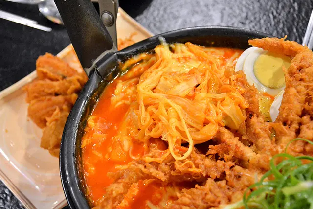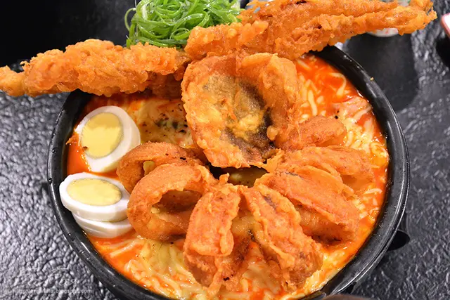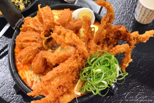 著名招牌菜是炸魷魚呈現張牙舞爪的狀態延伸到鍋子外頭,