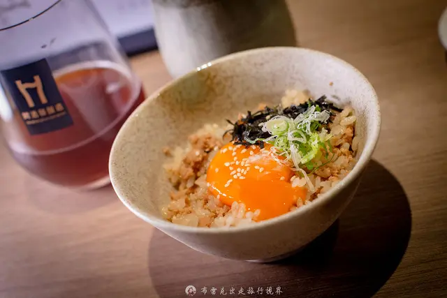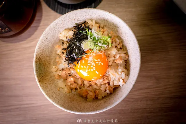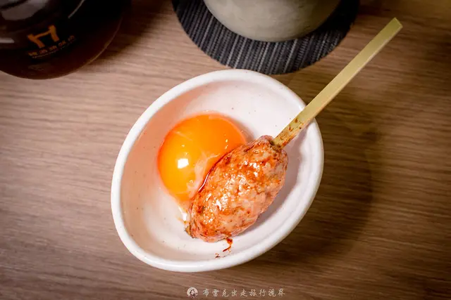 雞肉丸做得不是特別緊實那種,咬下去是整個鬆軟的,但肉感很舒服,還帶有肉汁味,更特別就是裡面還塞了軟骨,讓口感非常有曾次,還多了九層塔的香氣,先單吃一口,再沾上生蛋黃再吃一口,整個吃法非常多元。