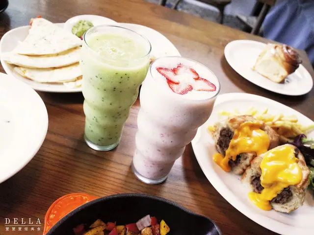 粉紅果昔、奇異果汁、巧達蛤蜊濃湯