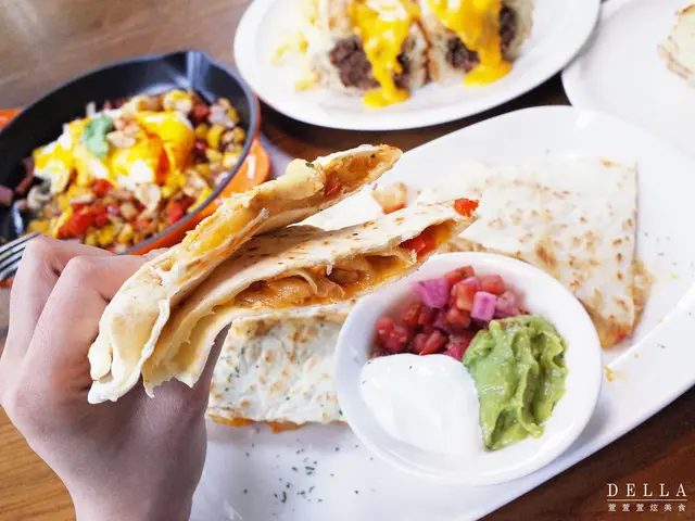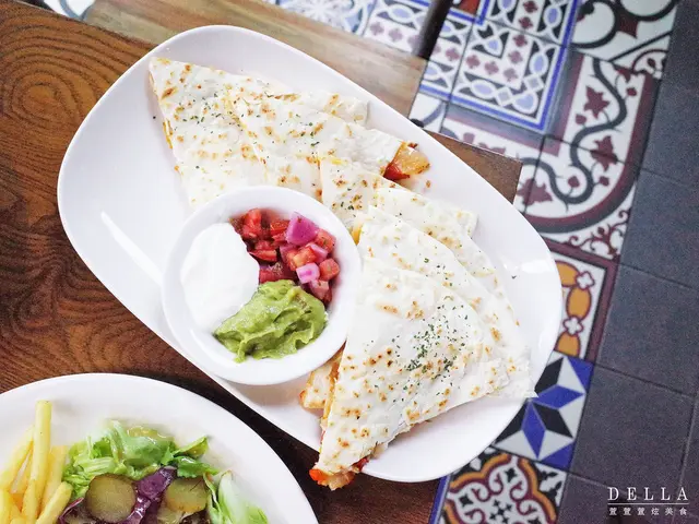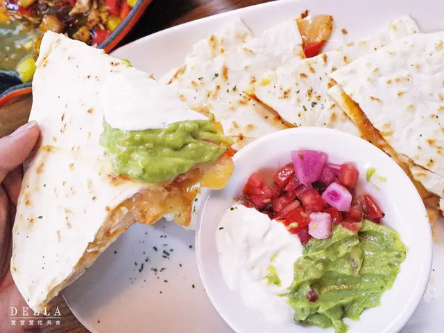充滿嚼勁的墨西哥烤餅中夾了燻雞和滿滿的起司
