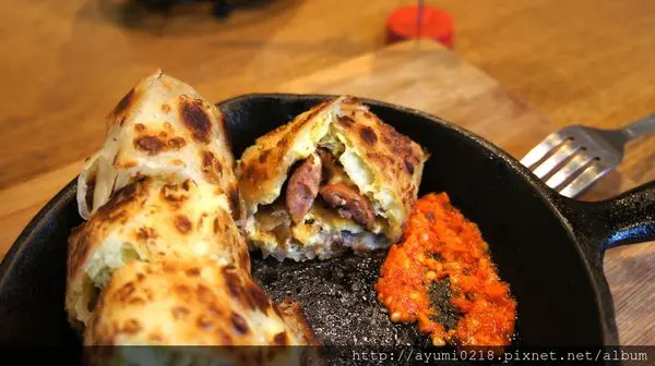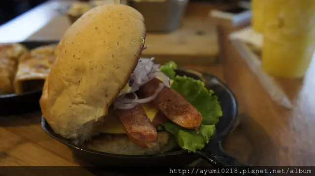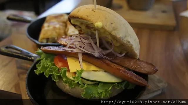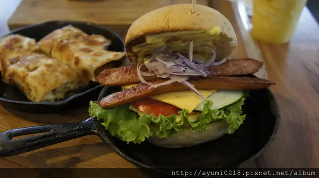 因為我們都想吃鐵鍋捲餅...只好強迫他吃漢堡(因為我想拍照)