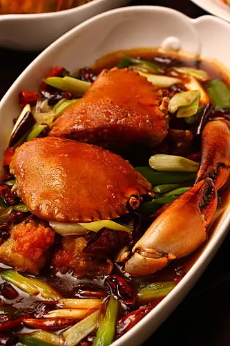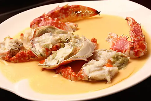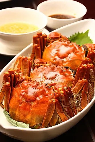 其一是:五款首碟─香烤子魚、花雕醉雞、翡翠羽衣、芹花蜇頭、糖心燻蛋;餐點為:蟹黃小籠包、清蒸大閘蟹二隻、蟹粉燴勝瓜、上海炒年糕、四季水果盤;每人3,800大洋,附贈老薑茶。
