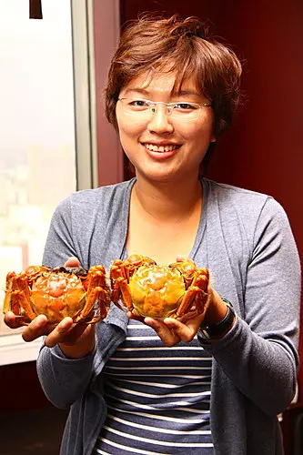 今年對岸的大閘蟹看來又無法進口了,但說起咱們台灣本土大閘蟹養殖業者也是挺爭氣的,一年養得比一年好,這次遠東飯店的合作對象,是由來自台中后里親泉農莊的年輕妹妹所養的,才28歲就很有生意頭腦的她,為了讓自己的大閘蟹可以健康無毒,採取的是生態養殖法,也就是用自然湧泉加上大量水草,讓大閘蟹生活在很天然的環境中,雖然不是台灣最早開始養大閘蟹的人,但是她卻能保證自己的蟹絕對沒有抗生素或是一些有的沒有的藥物殘留,三年以來,她不斷研究怎麼養出更大的大閘蟹,今年終於能養出六兩的蟹,雖然數量仍然不多,但是已經證明她每一年的成果都在進步,所以連顏清標都曾包下她的養殖場,一買就是近百萬的大閘蟹呢!