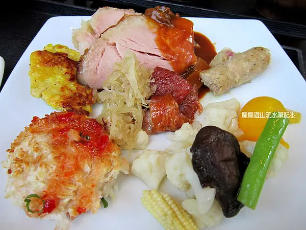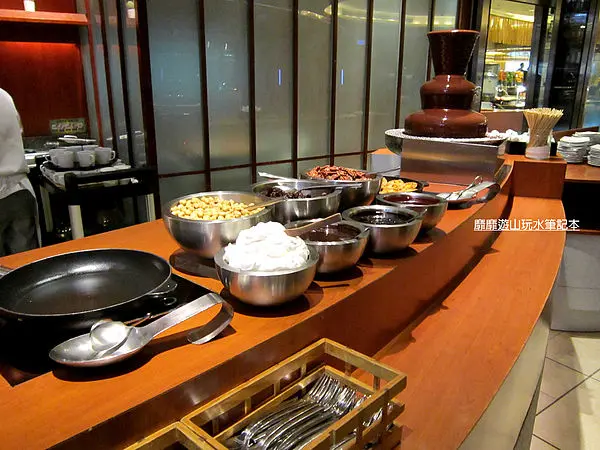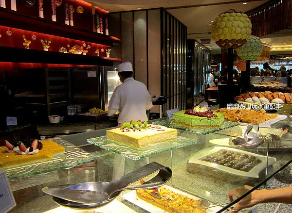 熱食的餐檯從頭到尾都圍滿了人,所以我跟小達令就逆向操作的從甜點區開始取餐好了~