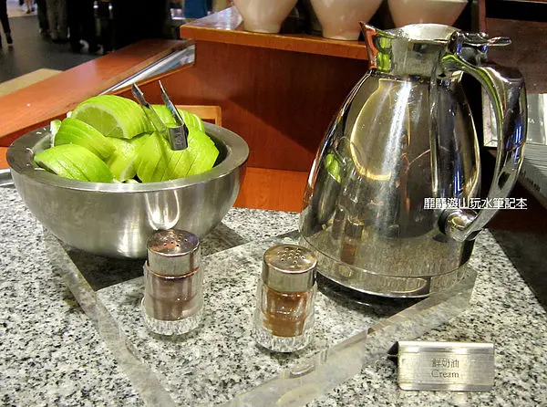 鮮奶、檸檬片、肉桂粉、可可粉都在這兒,愛加什麼自己來~
