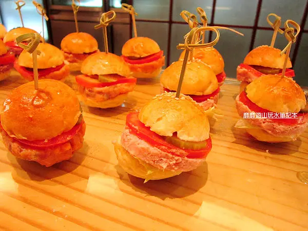 雖然明知吃了會很飽,但是排不到熱食我還是拿了個魚肉漢堡跟三明治來充場面了~