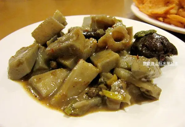 原來是用大量的香料醃漬的還是不確定是不是蓮藕的菜,花椒味超重,我有嚇到~