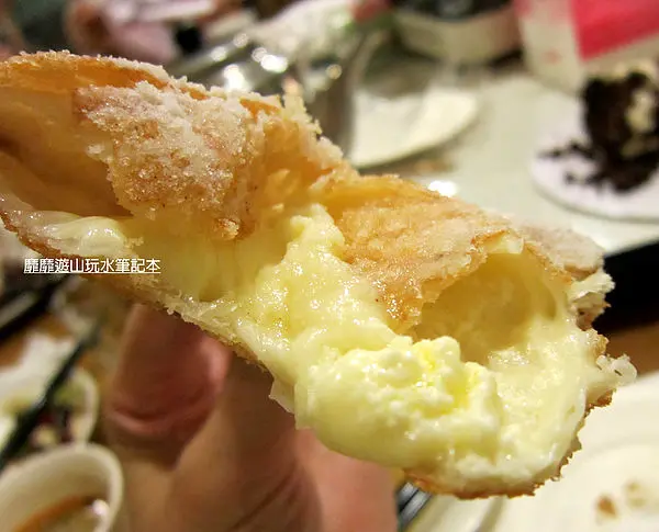 酥脆的外皮上有厚重的糖粉,中間的奶酪起士是比較低調的香甜,跟蛋糕的起士味道完全不衝突又都好美味,真的是大享受啊!