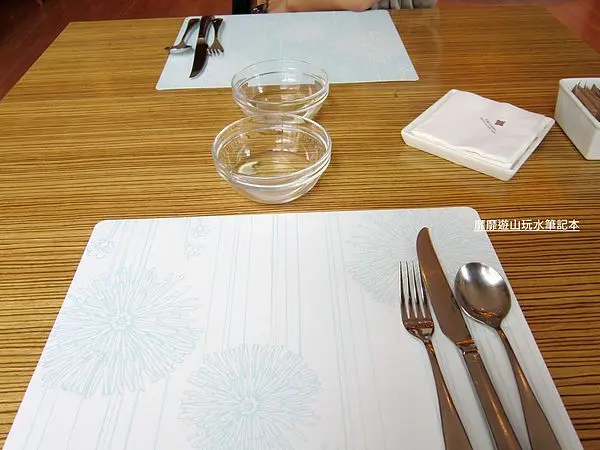 餐具是這樣的,因為有蝦蟹類需要剝殼的料理,還很貼心的提供了檸檬水給我們洗手喔~