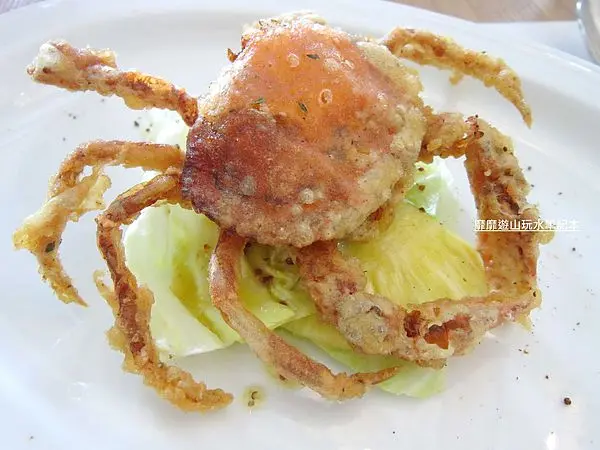 酥炸軟殼蟹搭圓球生菜(薑汁芥末油醋醬汁)