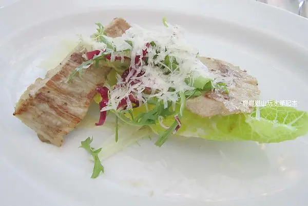 烤雪花豬好美味喔,選擇搭配的堅果優格醬也有幫忙大加分,上面滿滿的現磨起司再幫忙加分~很好很好!!