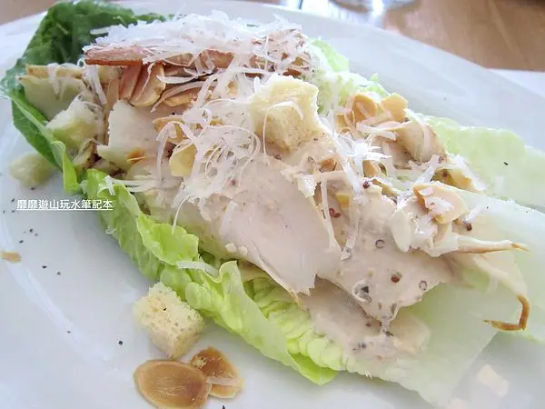這裡的凱薩沙拉好讚喔,搭配了清新的水煮肉跟杏仁片就變得很特別了,好好吃!