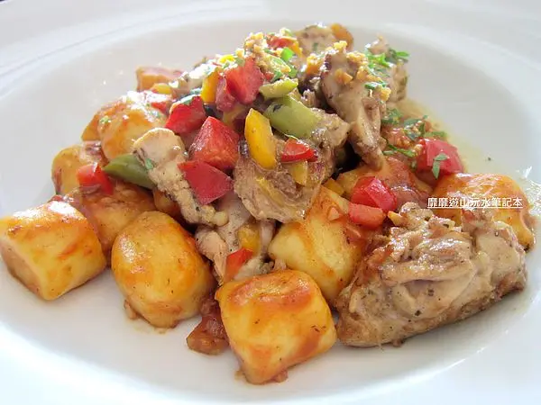 馬鈴薯手工麵糰綿綿QQ的口感好特別,搭配微辣的甜椒跟煎的香嫩的雞肉整個很開胃又有飽足感,我很喜歡!