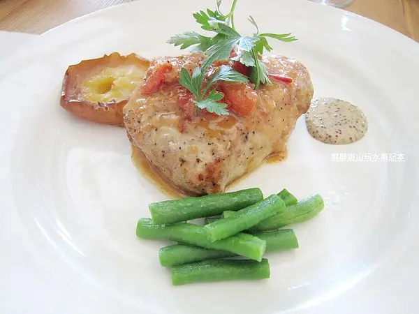 微甜的蘋果香搭配淋上番茄莎莎的豬排好美味喔,有青春洋溢的甜蜜感~