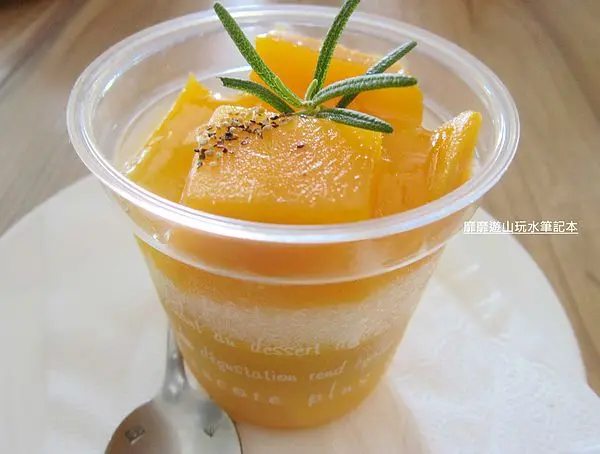 最上層是新鮮芒果,中間是檸檬果泥,下層是芒果凍,吃起來有驚喜的感覺~