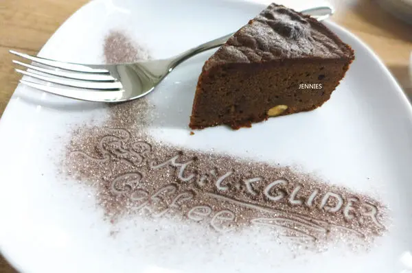 蛋糕是咖啡的好夥伴,MILKGLIDER與樂芙尼合作,提供幾款小蛋糕。我一踏進咖啡店目光馬上就被冷藏櫃裡的幾款蛋糕所吸引。蛋糕櫃上有幾款是樂芙尼主打的蛋糕像是小蕾克:使用LINDA巧克力 香草烤布蕾 巧克力蛋糕 原味達可瓦茲NT95元/覆盆子綿花糖:使用新鮮覆盆子餡 法式綿花糖 巧克力杏仁餡 NT100元還有照片上這款是MILKGLIDER才吃得到的布朗尼巧克力蛋糕。我自己是沒有吃過樂芙尼的蛋糕但網路上很ㄏㄤ,聽說到了中午也是一位難求,如果你也想試看看樂芙尼的蛋糕也可以來MILKGLIDER品嚐。