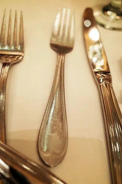 緊接著另外一位服務人員會以托盤呈上沙拉專用的冰鎮冰叉,請顧客親自取用。