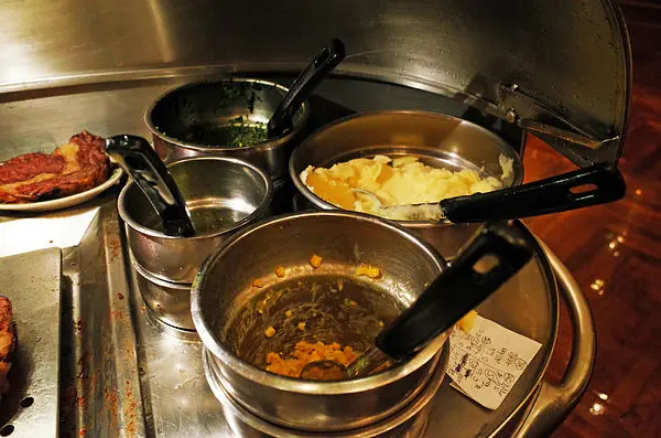 獨特的銀色餐車上不僅有大塊的牛肋排,還有經典配料都容納其中。