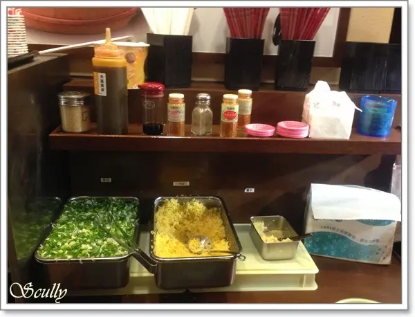 有蔥花、天婦羅花、生薑末,隨你喜好自由加~