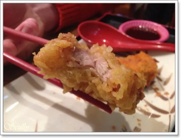 炸什錦$35+炸香腸$35:什錦裡有洋蔥和蝦米,酥酥脆脆很順口;香腸裡面有肉隻綿密外有點脆脆,挺特別的~