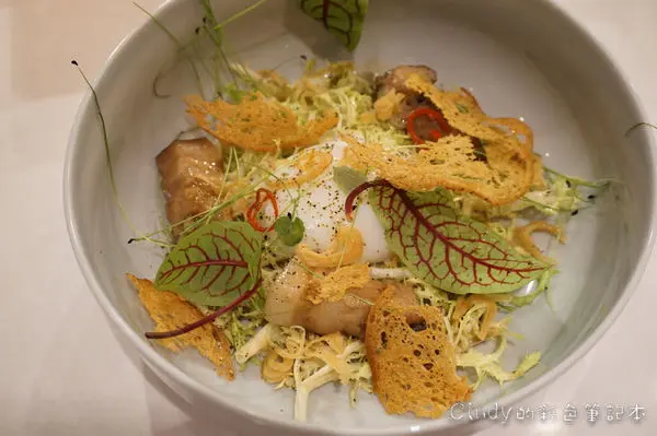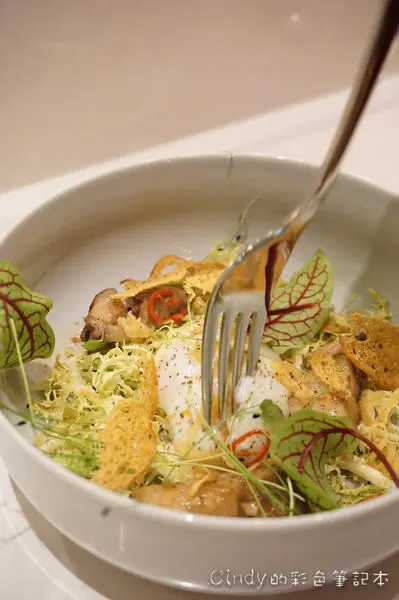綠捲沙拉、慢煮香檳茸蛋、燉豬五花、茴藿香 280元
