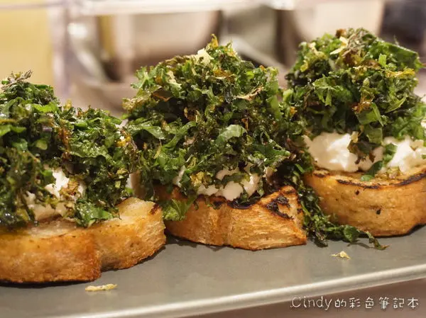 焦香羽衣甘藍土司、自製瑞可塔起士、檸檬、百里香 280元