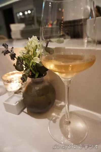 進主餐前侍酒師推薦我們嚐嚐這款汽泡酒