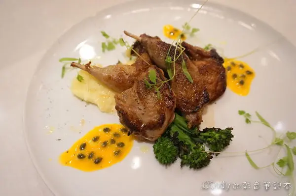 (飲酒過量有礙身體健康 請適量) BBQ風味鵪鶉、青花筍、洋芋泥、百香果、山蘿葡苗 520元