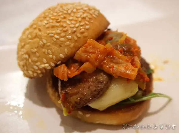 牛肉漢堡、鴨肝、自製韓式泡菜、酪梨、布里起士、芝麻葉 520元