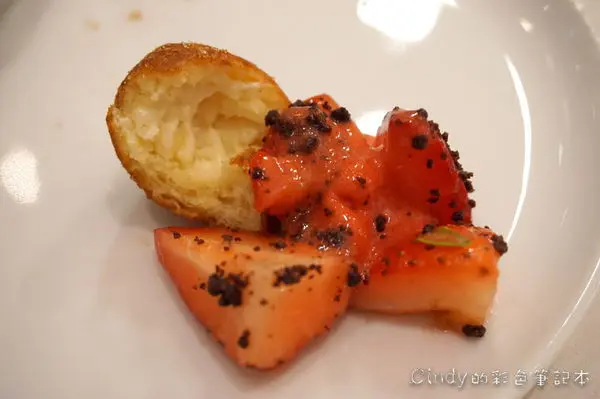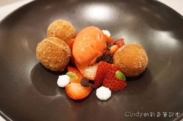 草莓沙拉、肉桂多拿滋、草莓羅勒雪酪 220元