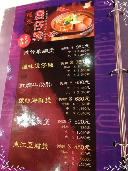 枝竹羊腩煲$980:小小的一鍋約2人份,裡面有羊肉、豆皮、荸齊、筍塊、清蔥絲,就只有這些料好貴ㄚ!