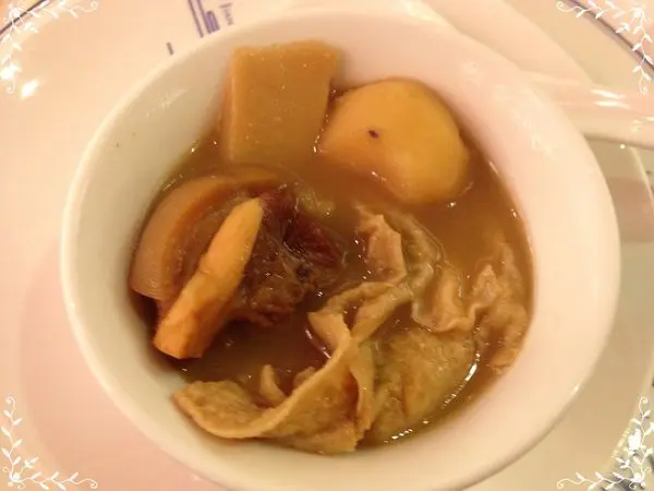 荸齊很脆羊腩有嚼勁又入口即化,好好吃,但是感覺好像是羊肉爐!!再看看沾醬,沒錯就是高高級版的羊肉爐,約可以裝6碗這樣小小湯碗的份量,真的不便宜ㄚ!!