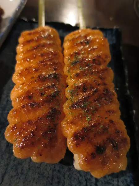 [明太子雞肉串 120元/2串] 登棱!無疑是今日第一名 之吃一串不夠