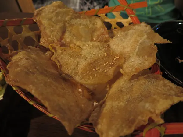 本來以為是像烤雞皮之類的串物 但居然上來是像薄片餅干類的食物了