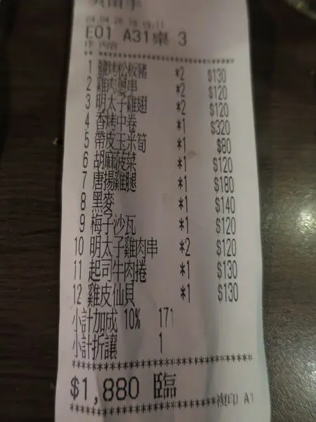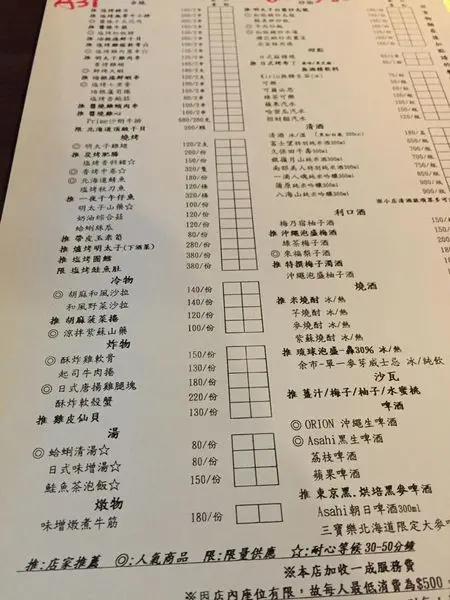 附上部分的菜單 給大家參考 要加收一成服務費喔